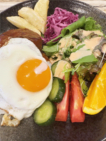 生徒さんたちが協力し合ってカフェの企画を運営していたので、私としては「応援しよう」という気持ちで訪れたのですが。。。 演奏メンバーは「先生が聴きにきた!?」と、とても緊張されたようでした。ハワイの音楽を聴きながらハワイのお料理をいただく、特別な時間になりました。 店内はお客様でいっぱいで、カフェ企画は大成功でした。 写真はハワイの定番料理ロコモコです。ハンバーグがふわふわで美味しかったです♪生徒さんたちが助け合って一生懸命取り組む姿に感動しました。 |